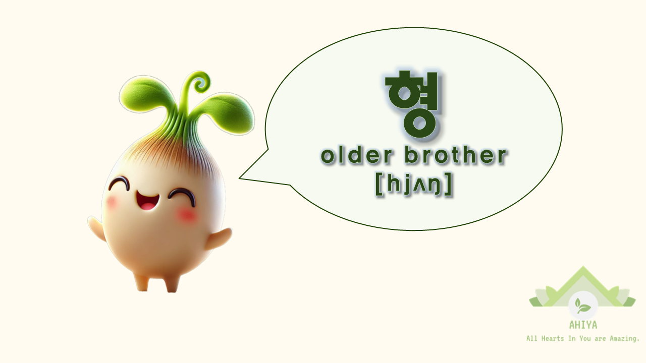 “형”的词源来自古代韩语,最初源自汉字“형(兄)”,意思是“哥哥”。这个字用于指代男性兄弟。
